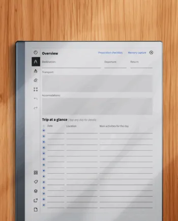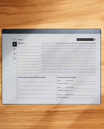 This annual planning template works seamlessly on reMarkable 1, 2, and Pro. Optimized line weights, intelligent navigation, and layouts designed for digital paper.